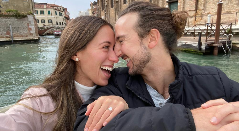 “I had CC convinced that the pandemic would prevent us from getting engaged anytime soon. Little did she know, the day that her ring was ready at Koser would be the day I popped the question. I couldn’t wait. With almost a foot of snow outside, I convinced her to take a walk with me after work. Under the stars she said, ‘yes,’ and accepted her beautiful ring.”