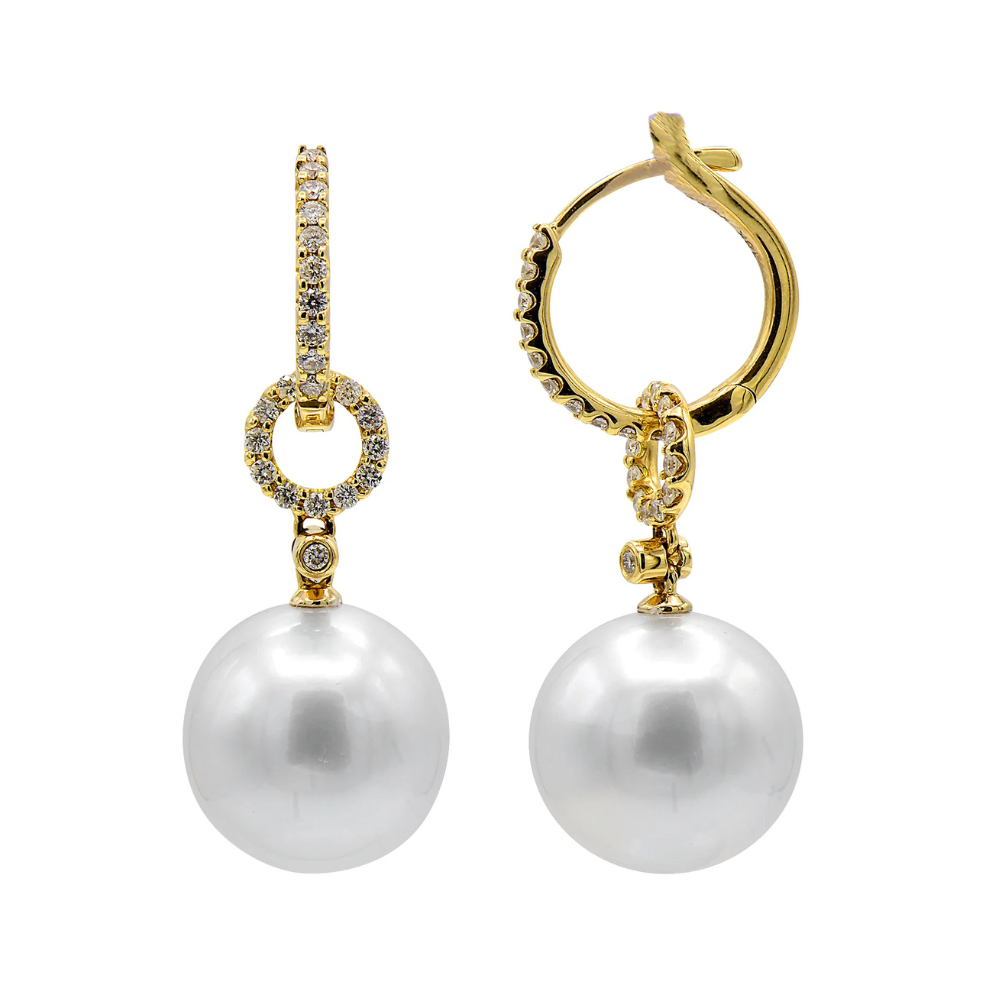 South Sea Pearl and Diamond Dangle Earrings