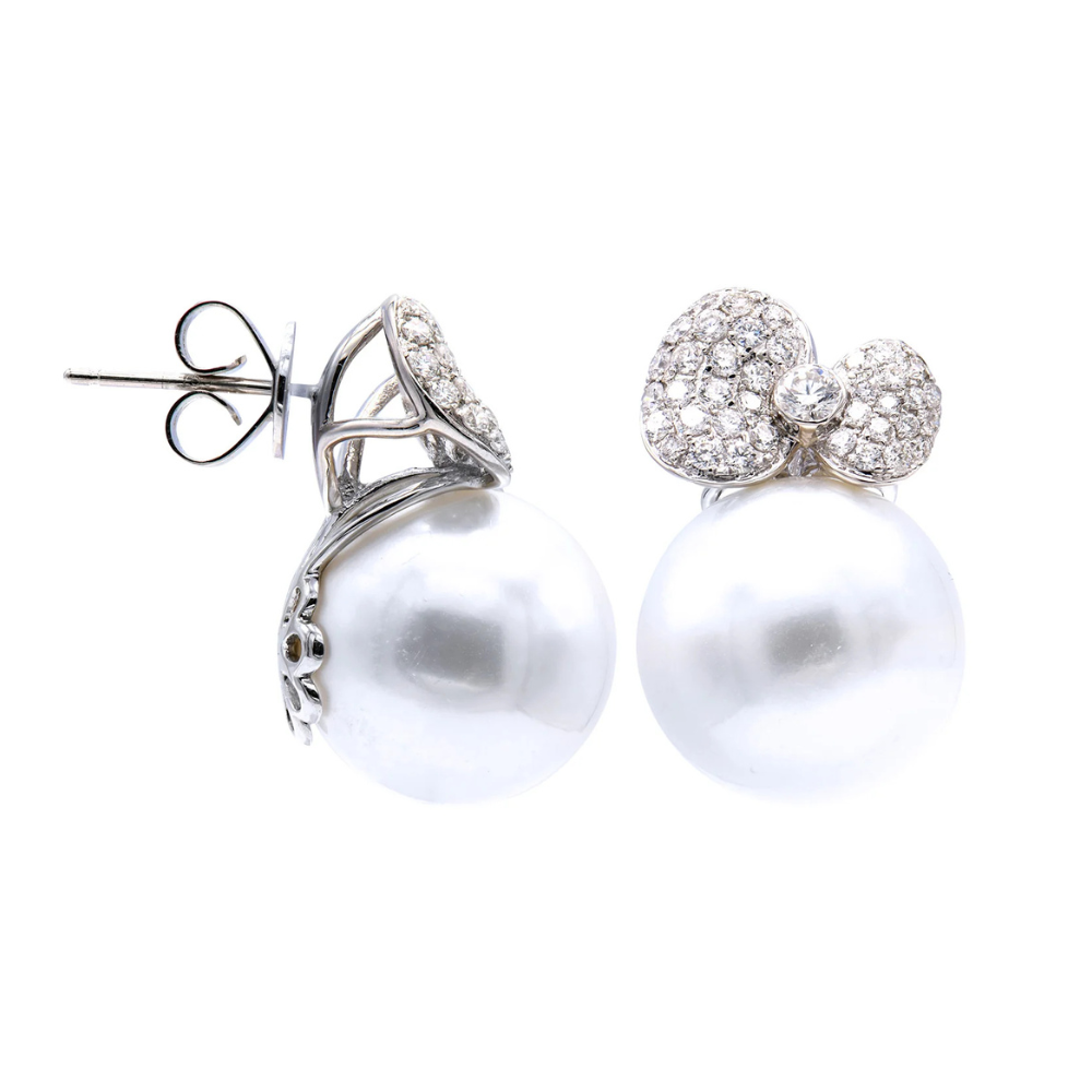 South Sea Pearl and Diamond Bow Earrings