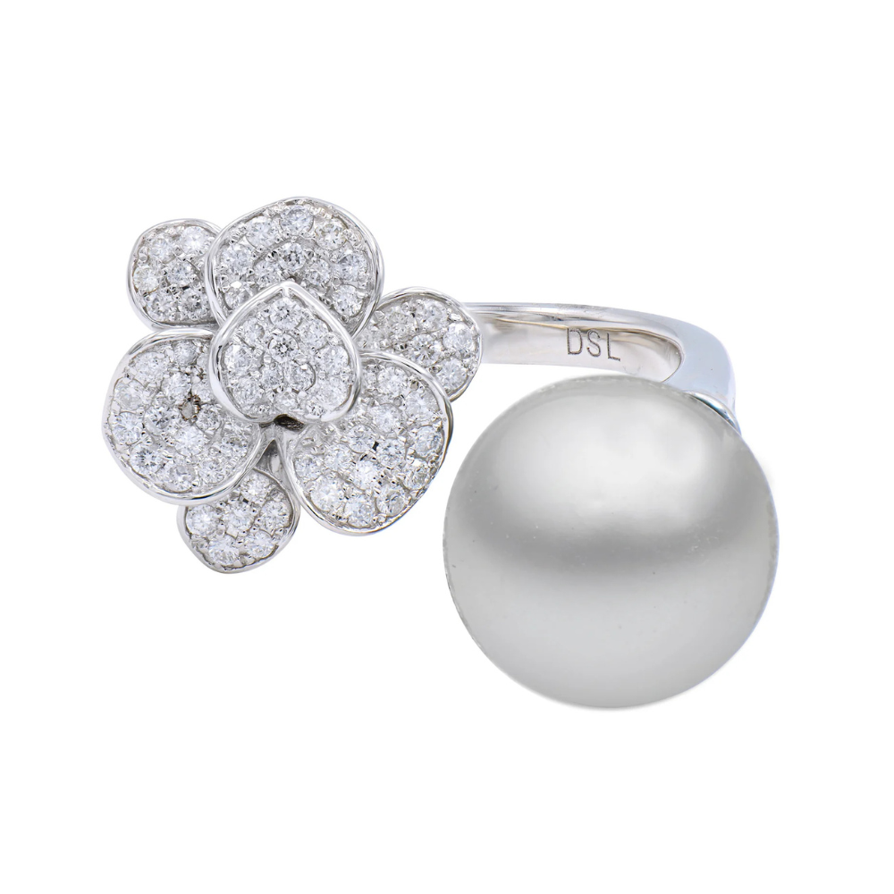 South Sea Pearl and Diamond Flower Ring
