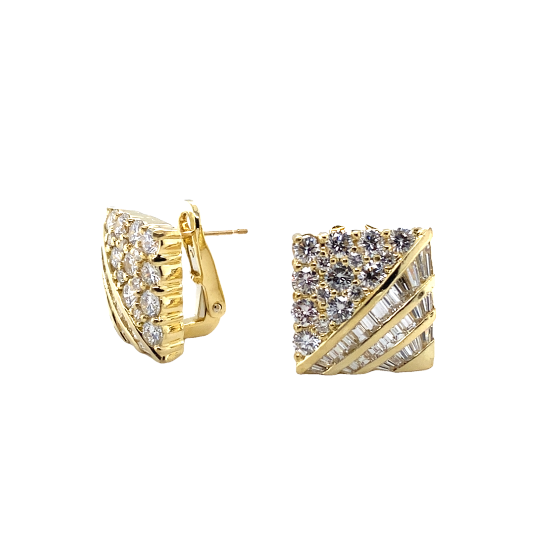 Square Earrings with Round and Baguette Diamonds