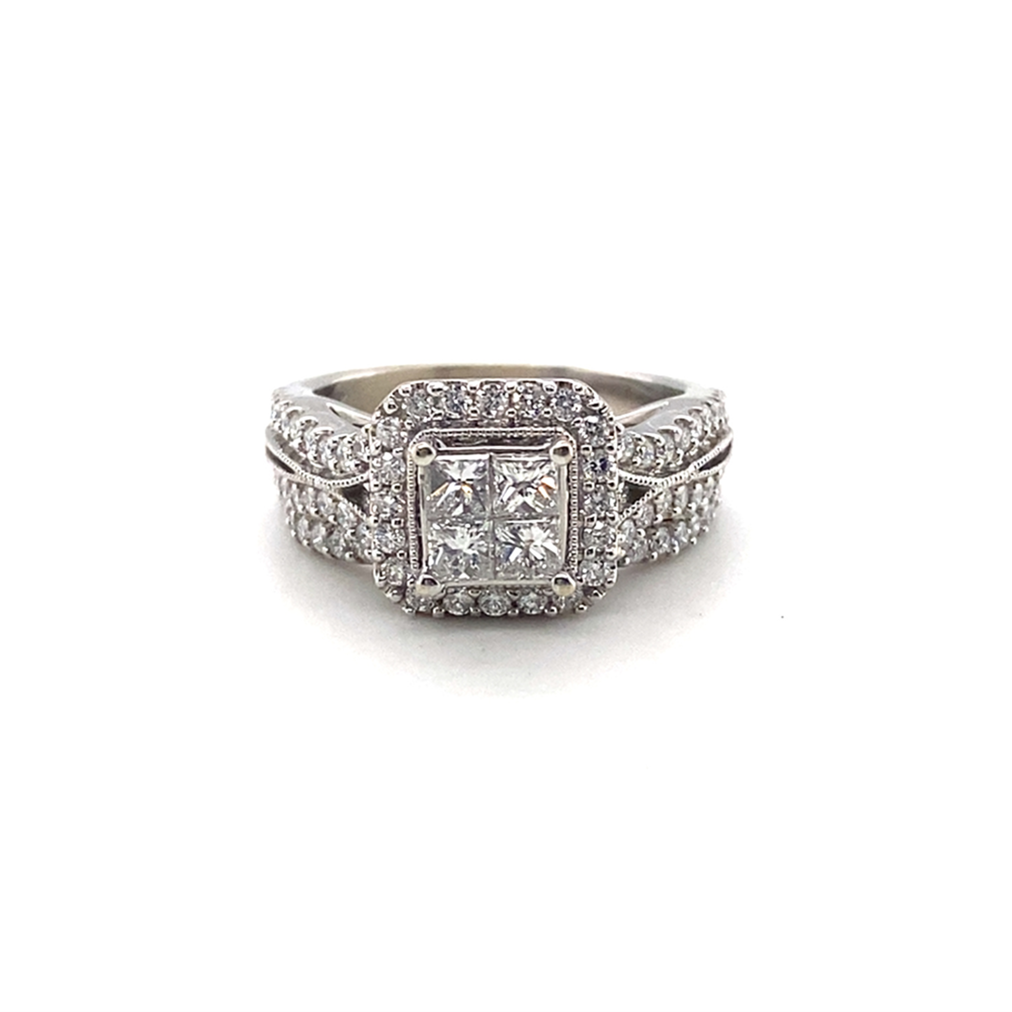 Invisible Set Princess Cut Halo Diamond Wedding Ring Set
