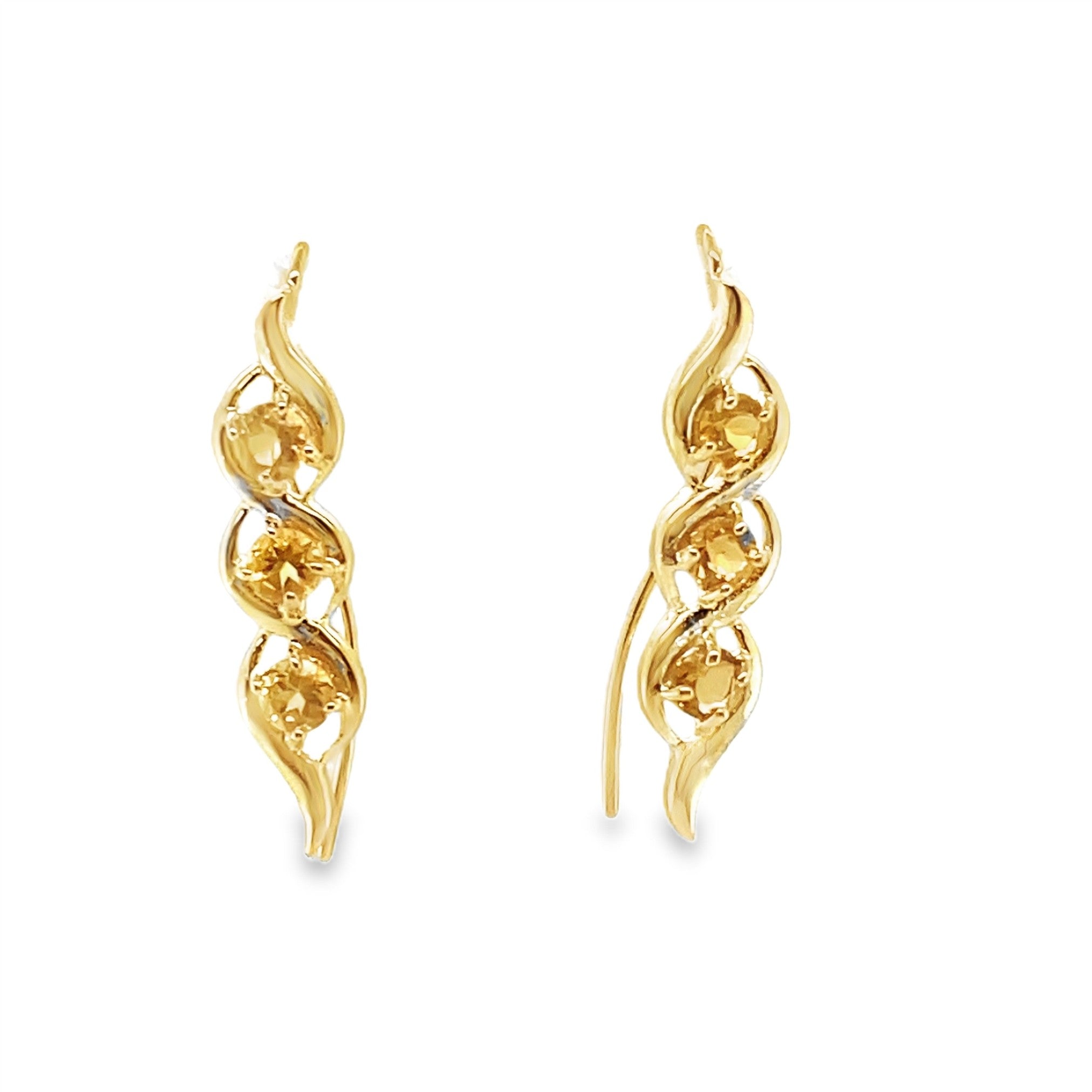 This pair of 14-karat yellow gold selena-style drop earrings features (6) round AA citrines with a total combined weight of 0.60 carat. Stamped "14K".