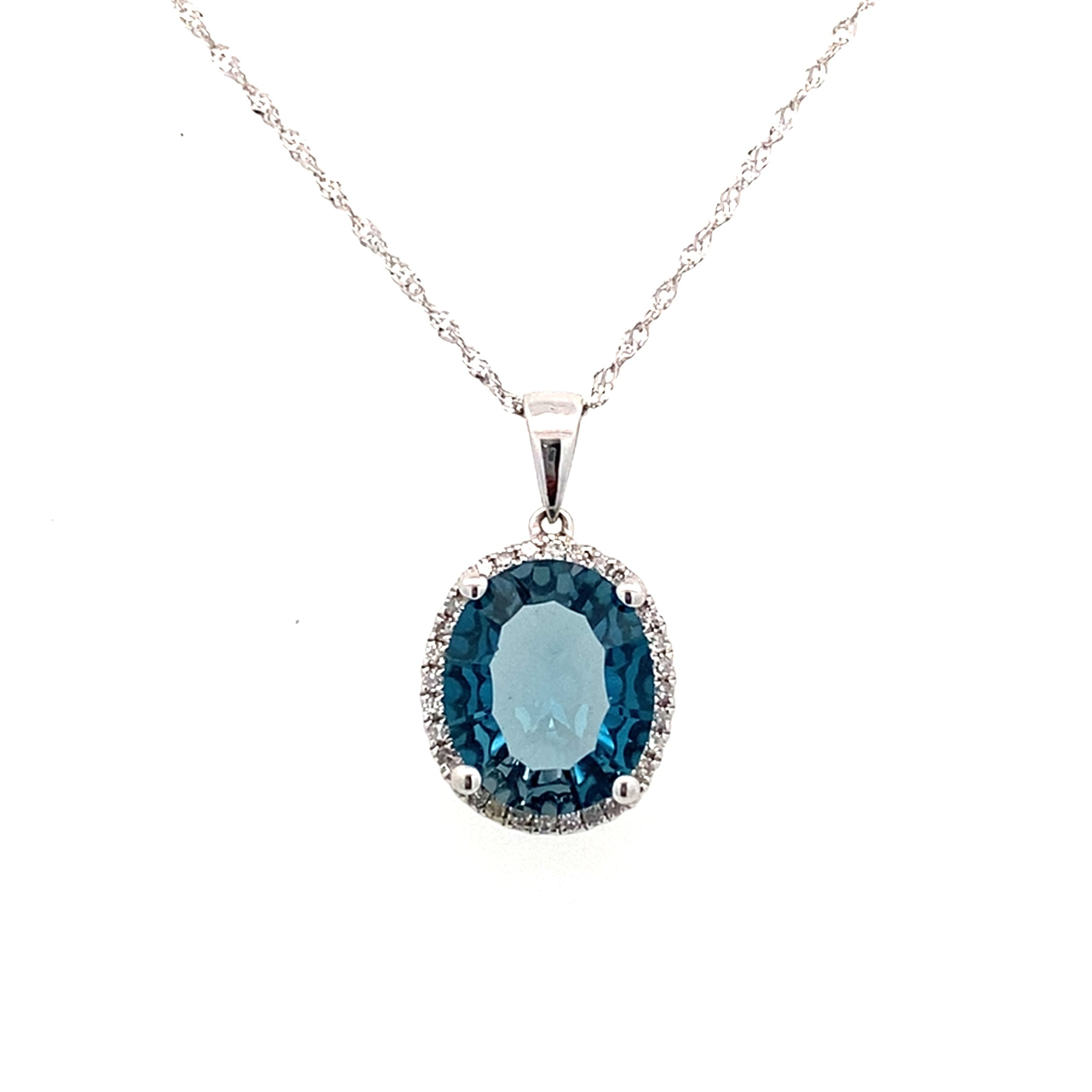 London Blue Topaz and Diamond Halo Pendant