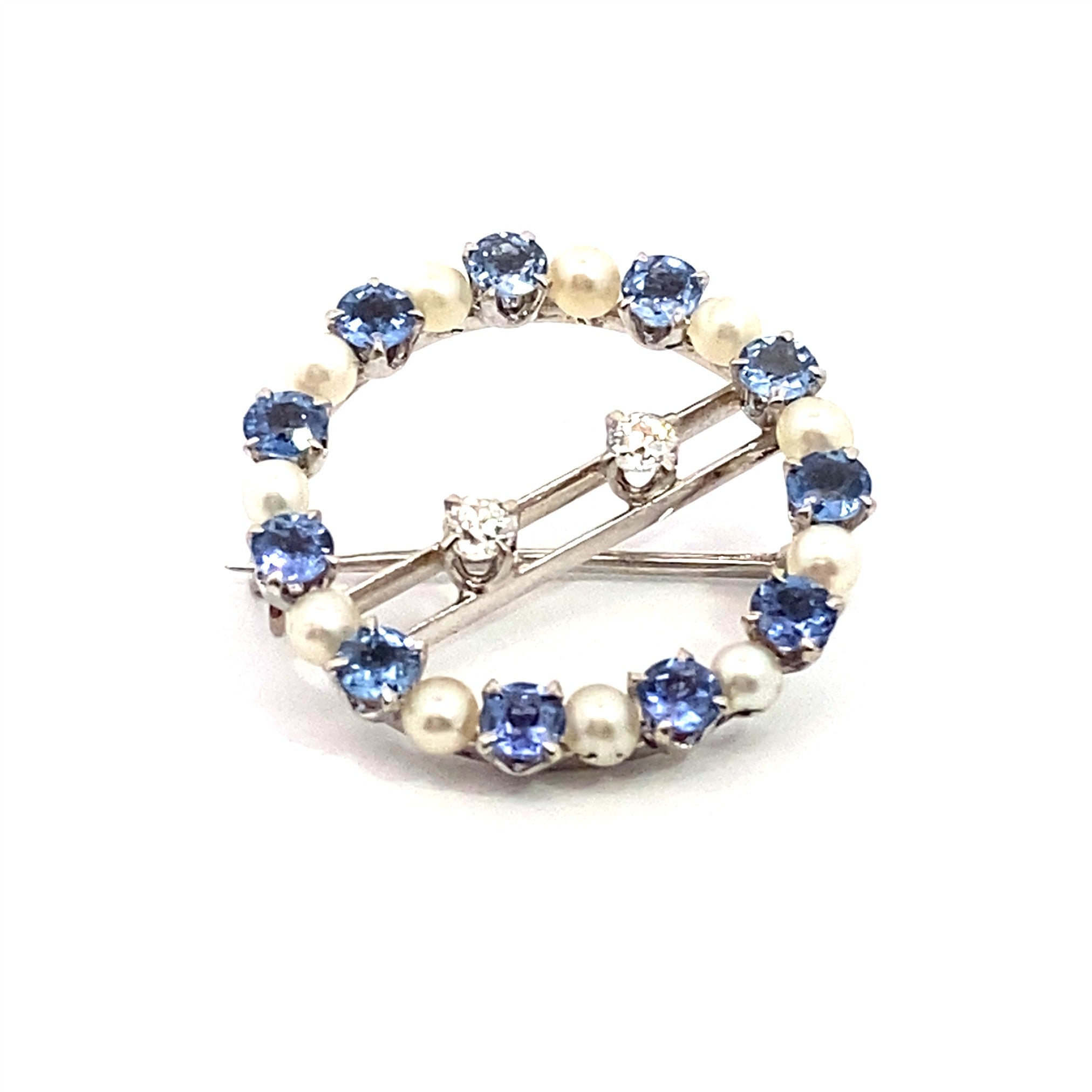 Sapphire, Pearl, & Diamond Brooch