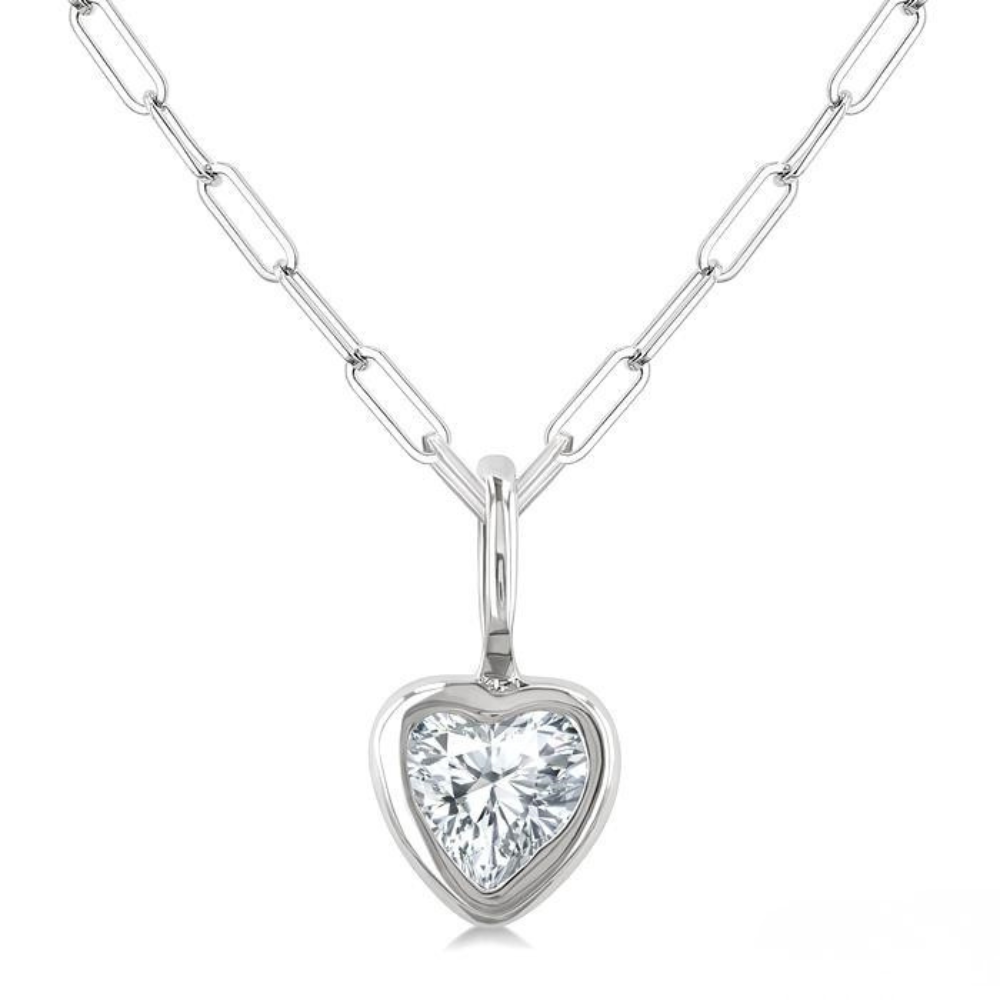 Heart-Shape Bezel-Set Paperclip Diamond Pendant