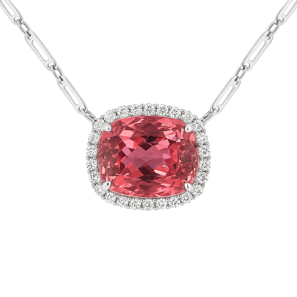 Pink Tourmaline and Diamond Pendant on Paperclip Chain