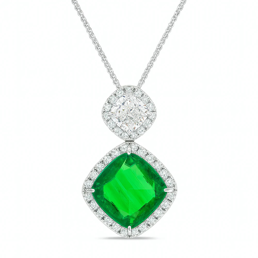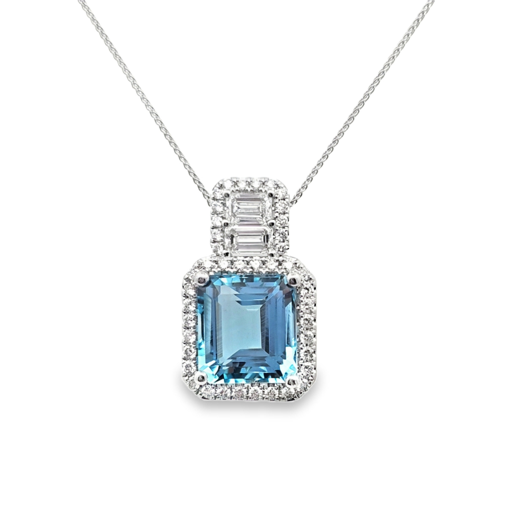 Emerald-Cut Aquamarine and Diamond Halo Pendant
