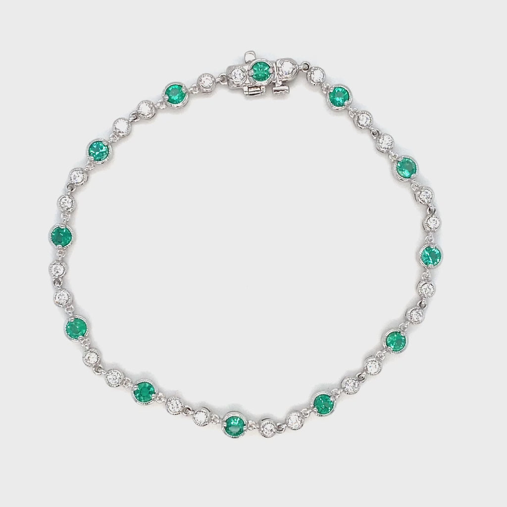 0.72 tdw 12 x 3 mm Milgrain Bezel Emerald & Diamond Bracelet 7.25" 14K White Gold