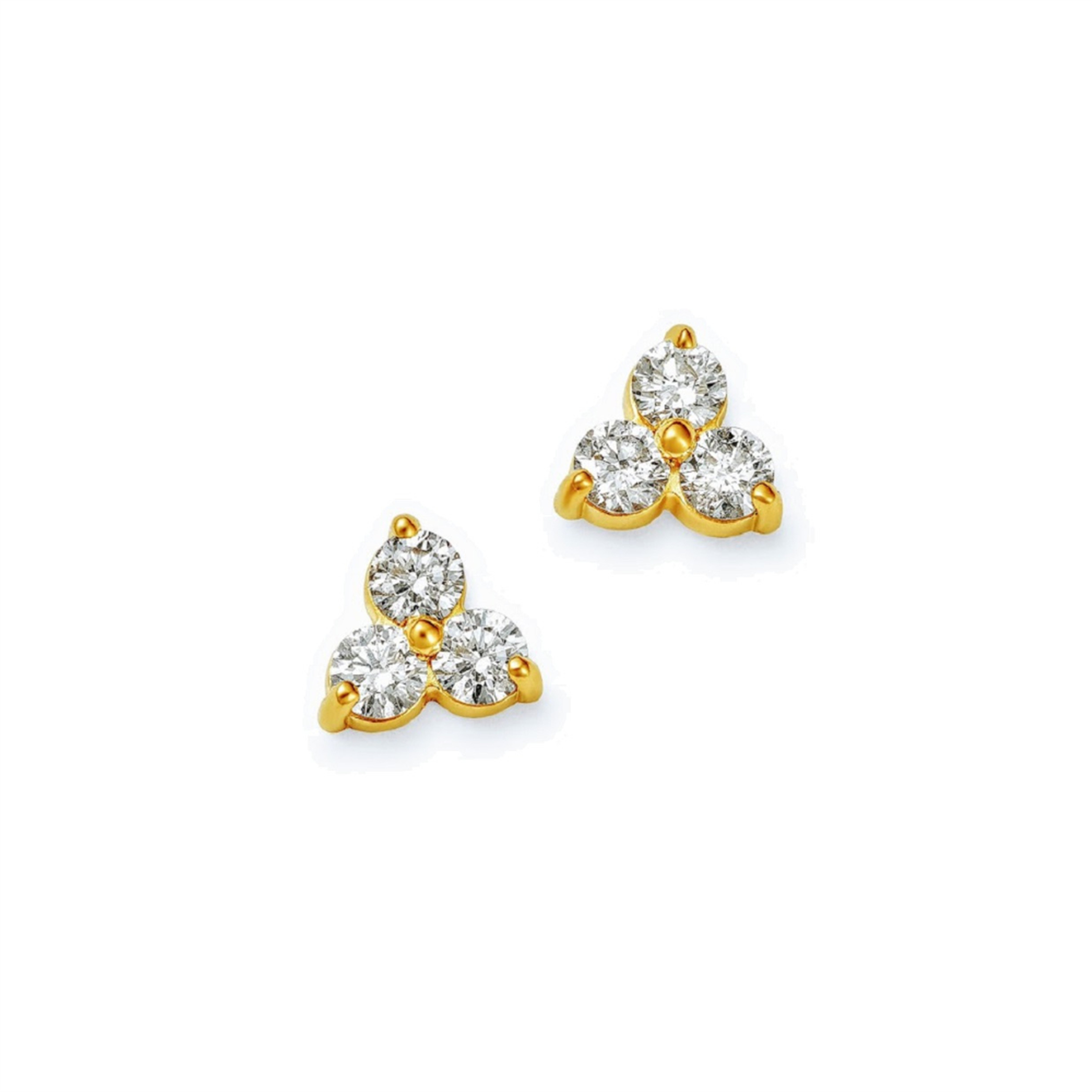 This pair of 14-karat yellow gold stud earrings features two clusters of (3) diamonds. The diamonds have a total weight of 0.20 carat and quality characteristics of H/I color and I1 clarity. Fashioned with friction posts and pushbacks. Stamped "14K".