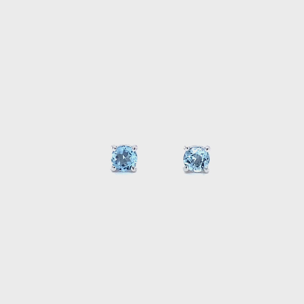3 mm Round Aquamarine Stud Birthstone Earrings 14K White Gold