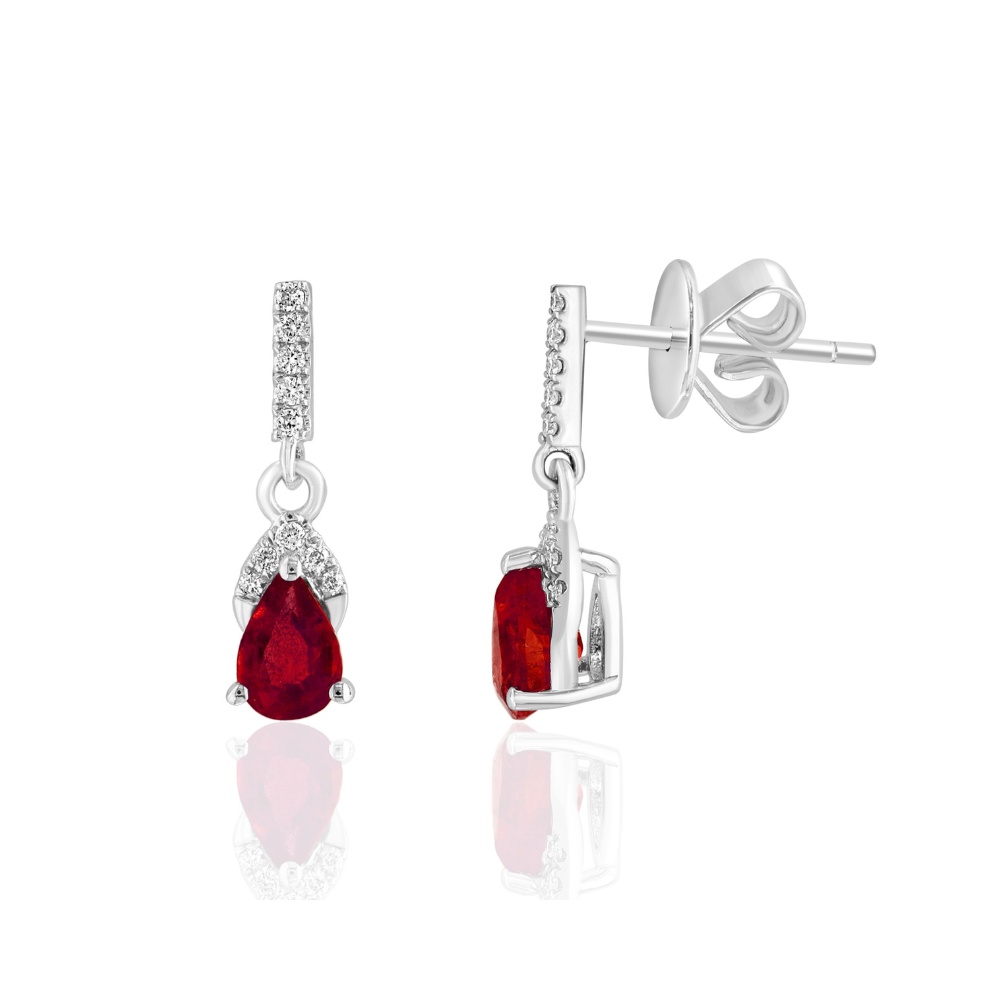 Pear-Shaped Ruby and Diamond Dangle Earrings
