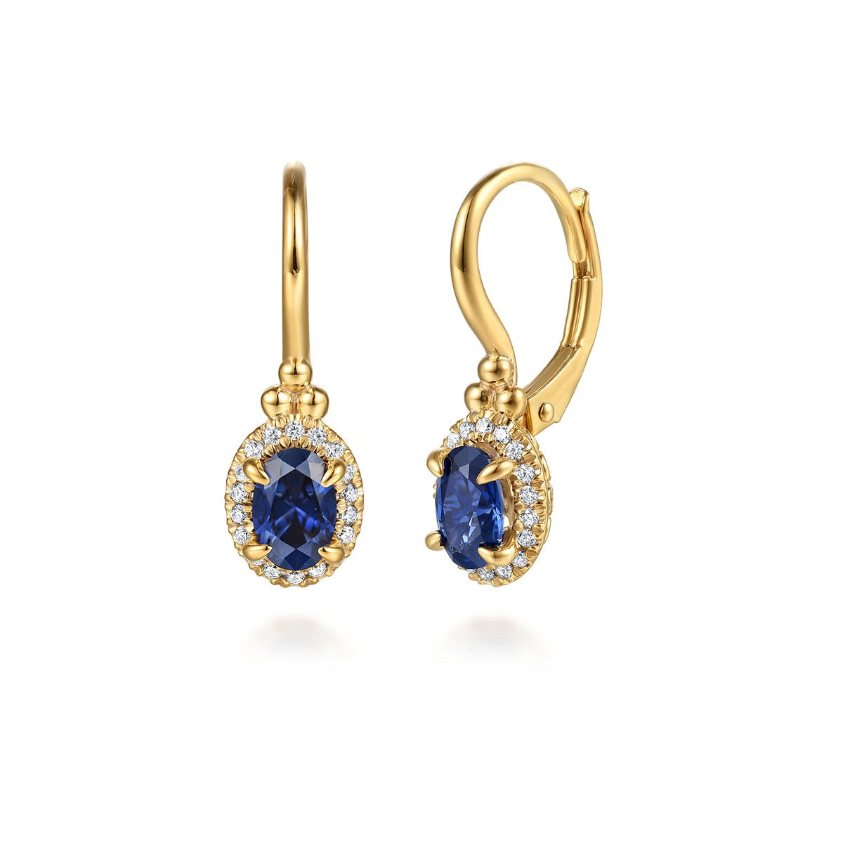Gabriel & Co. Diamond Halo and Oval Blue Sapphire Leverback Earrings
