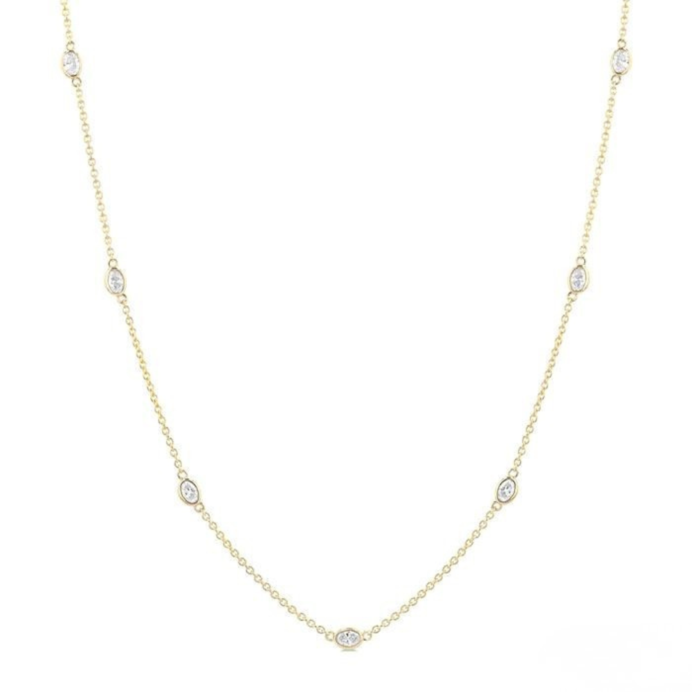 Oval Shape Diamond Station Necklace