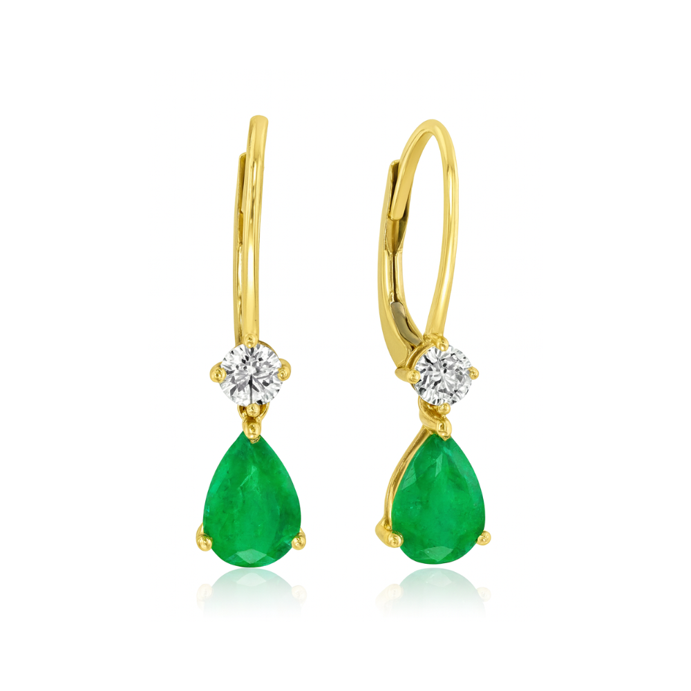Pear-Shaped Emerald and Diamond Dangle Earrings
