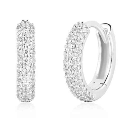 Silver Small Chubby Sparkling CZ Huggie Hoop Earrings