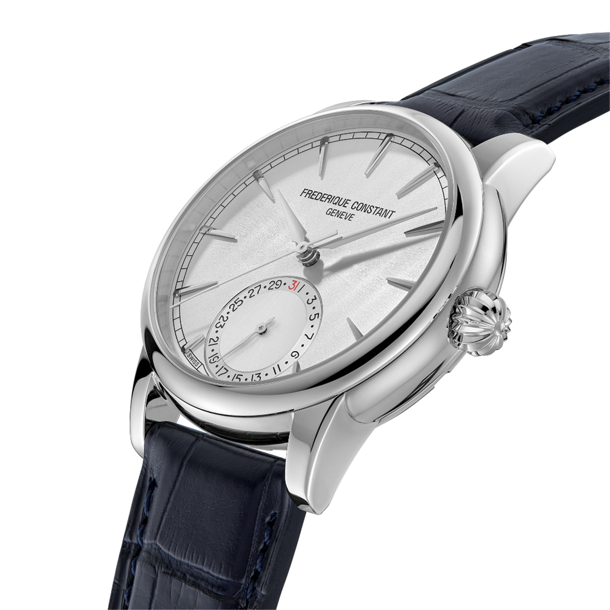 The Classic Date Manufacture now sports the new FC-706 Manufacture caliber with a 72-hour power reserve and a five-year warranty. The steel case has been resized to a smaller 40mm from a previously 42mm size, a classy and classic diameter housing a new dial free from numerals. Slim hour markers and a ‘railtrack’ minute circle encompass a silver sunburst dial.