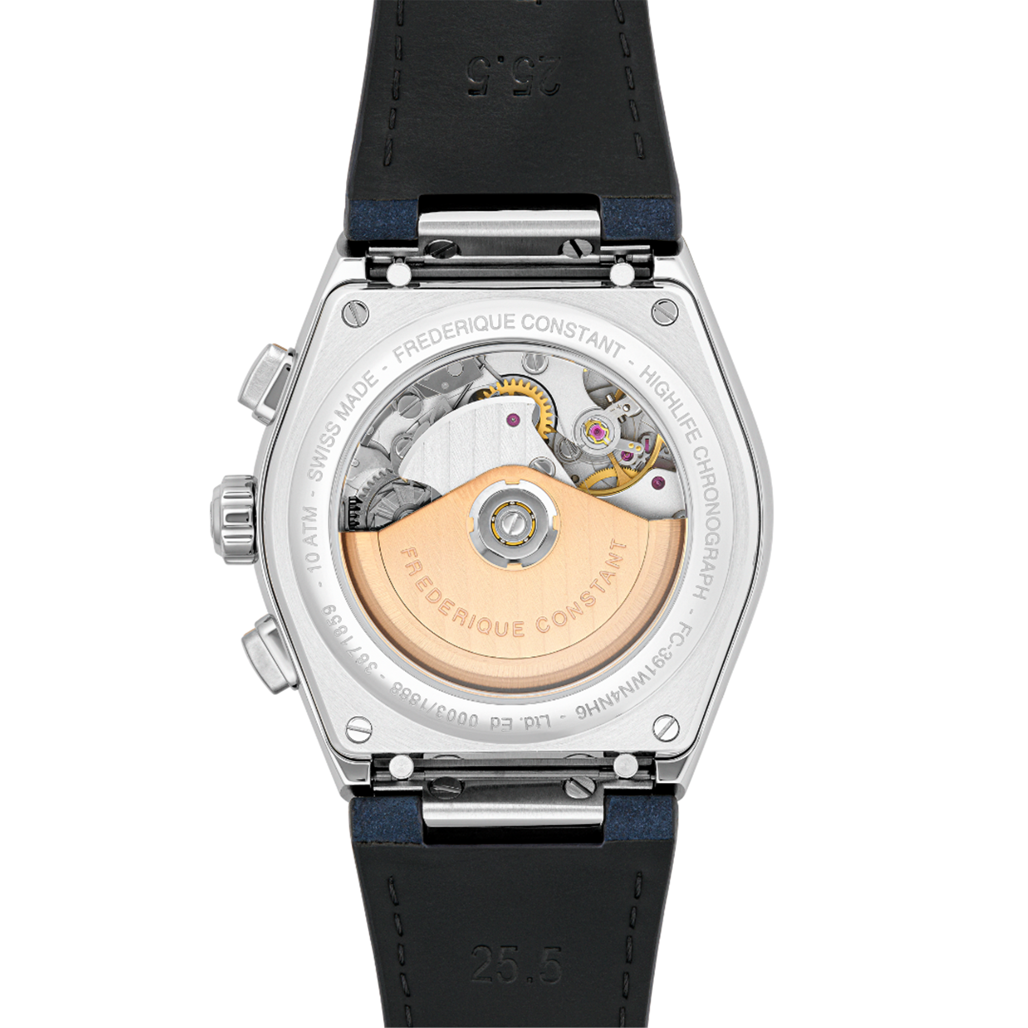 Emblematic complication of watchmaking, the Highlife Automatic Chronograph is equipped with the FC-391 movement, offering a 60-hour power reserve.