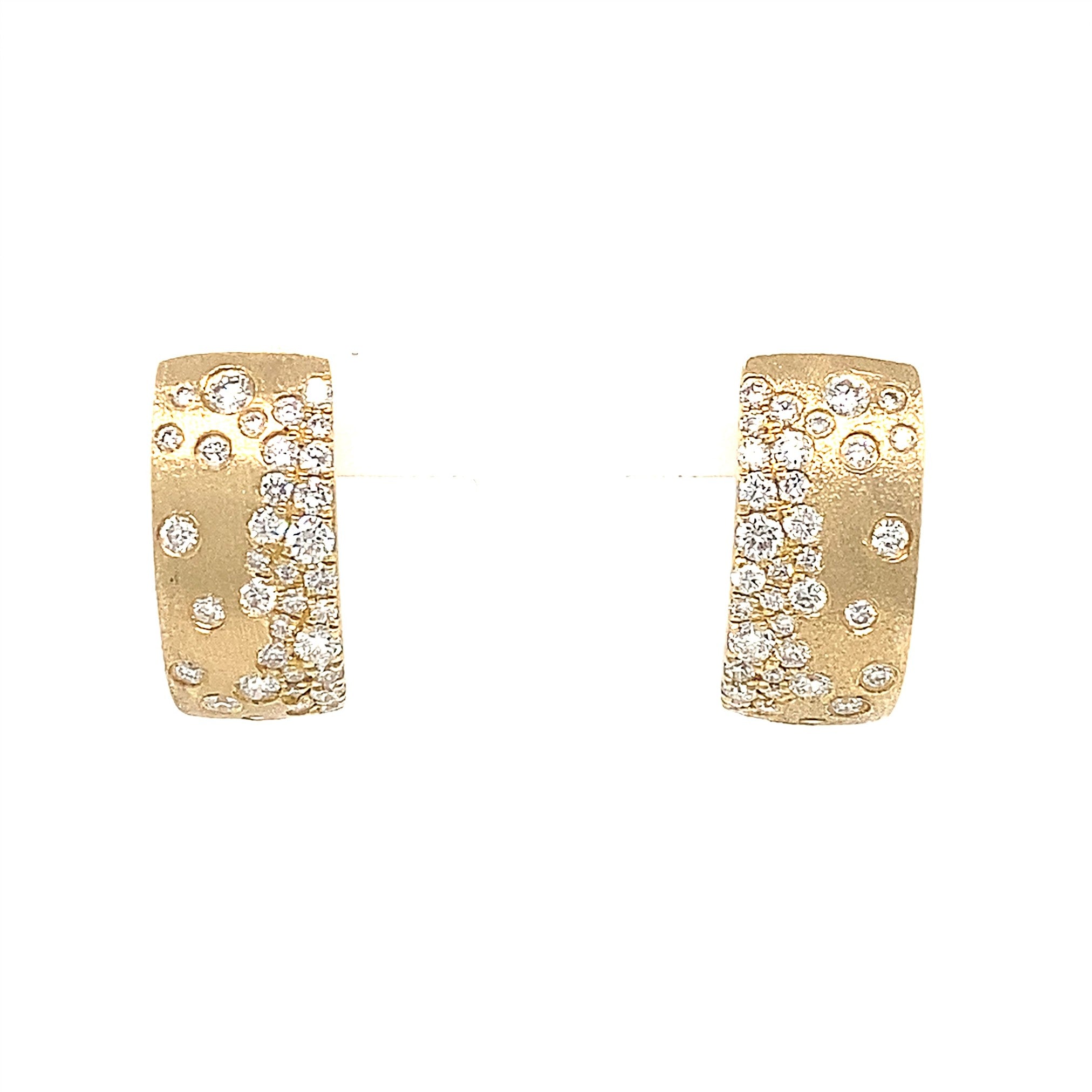 0.66 tdw Diamond Flush Set Satin Finish Hoop Earrings 14K Yellow Gold