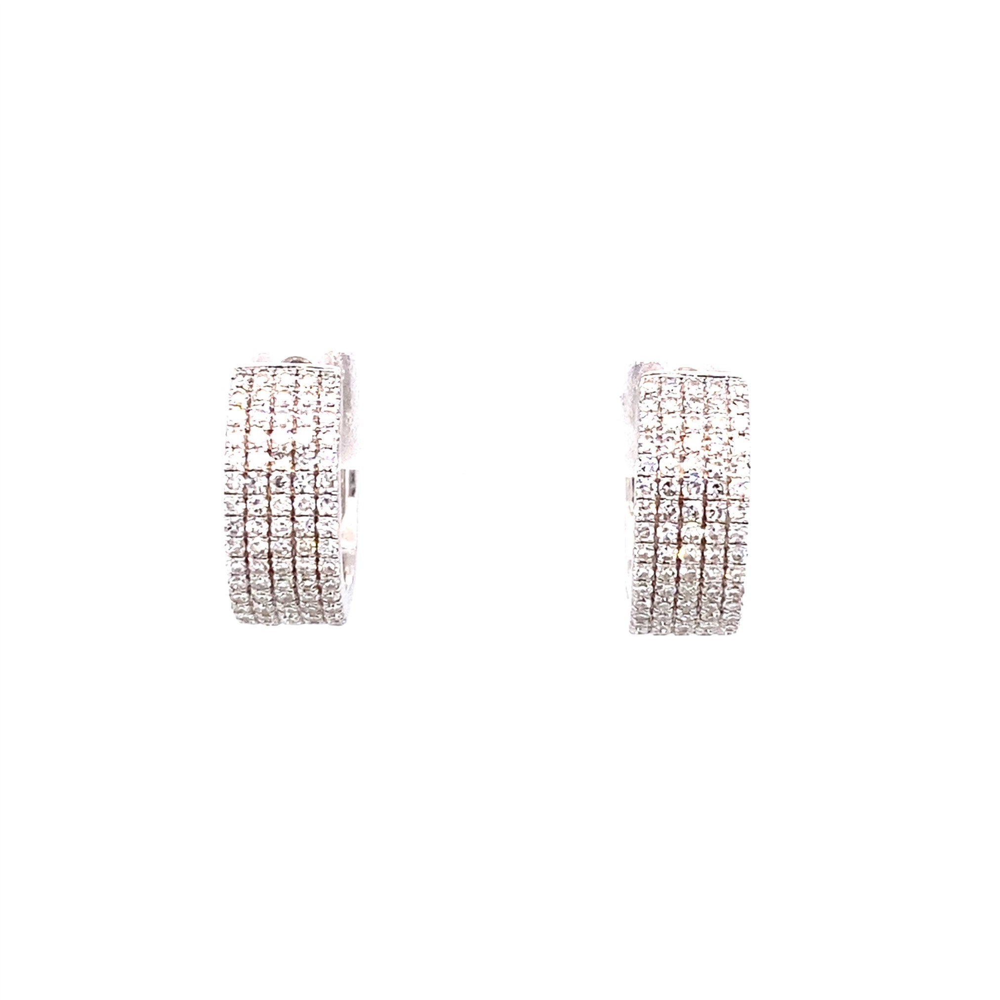 0.46 tdw Five Row Diamond Huggie Hoop Earrings 14K White Gold