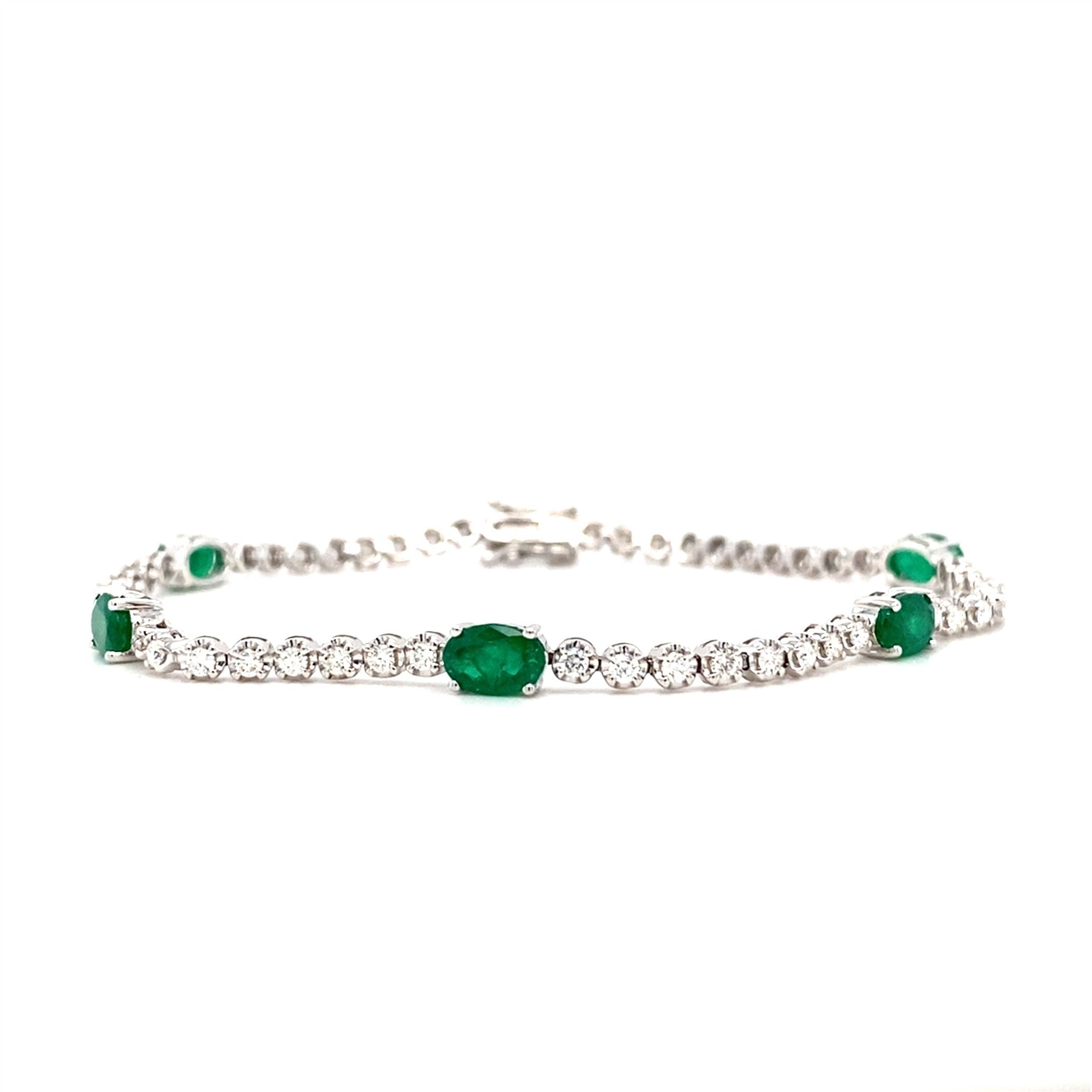 1.00 tdw Diamond & Oval Emerald Tennis Bracelet 7" 14K White Gold
