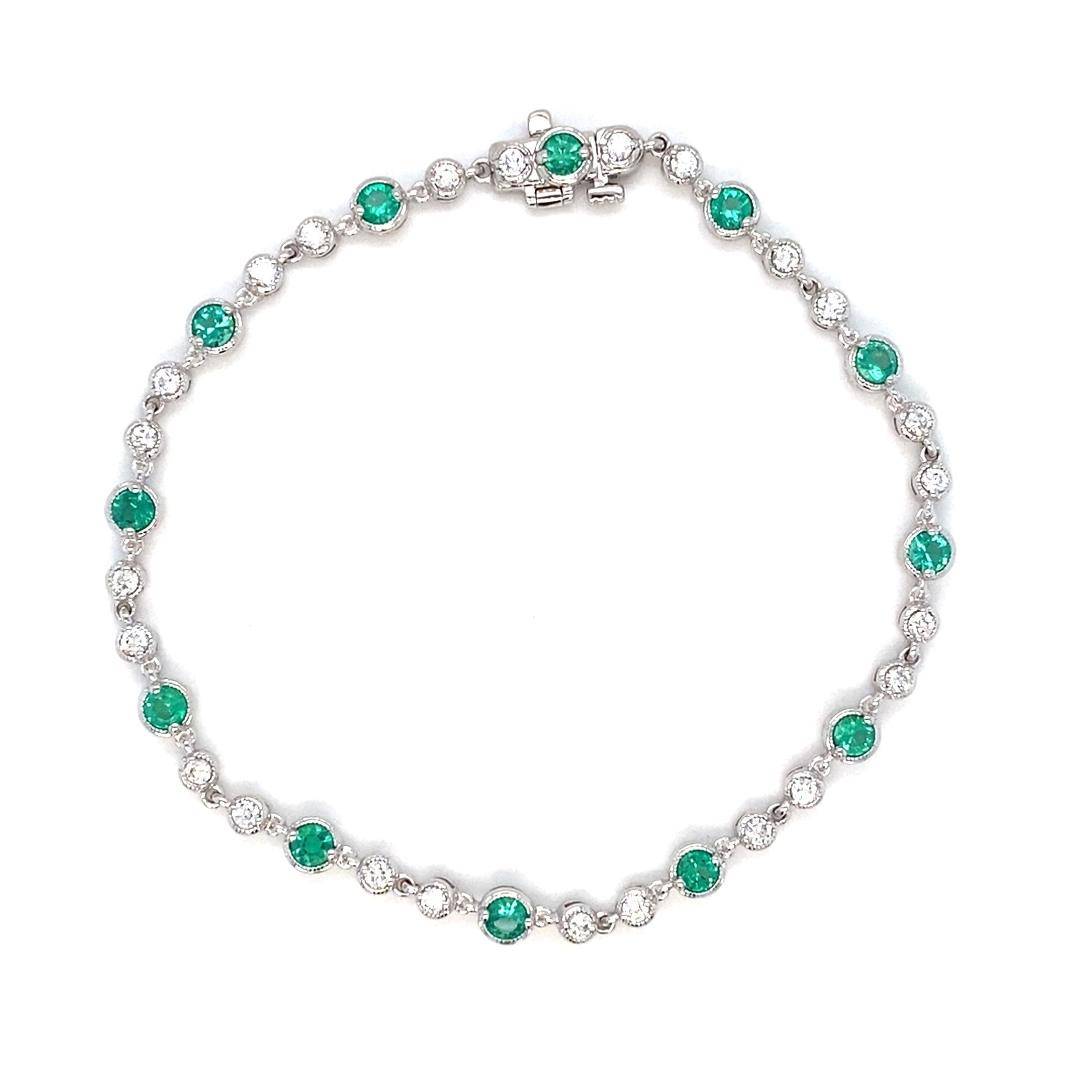 0.72 tdw 12 x 3 mm Milgrain Bezel Emerald & Diamond Bracelet 7.25" 14K White Gold